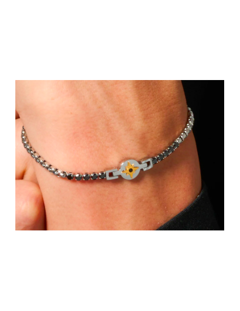 BRACCIALE TENNIS UOMO IN ACCIAIO CON ROSA DEI VENTI IP ROSE E ZIRCONI NERI