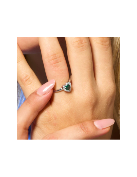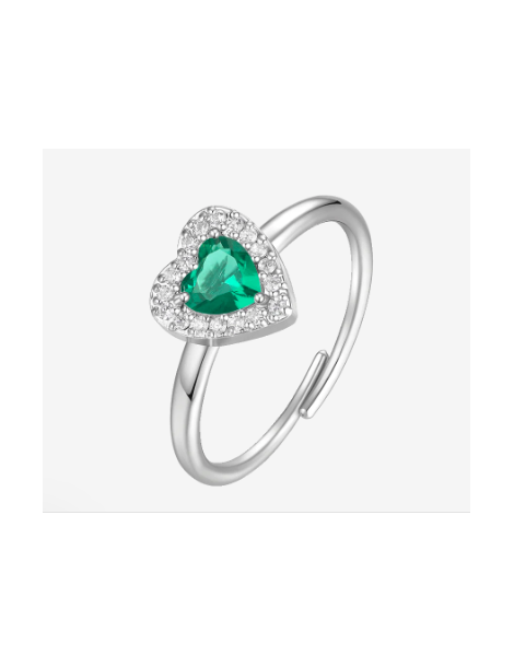ANELLO DONNA IN ACCIAIO CON CUORE CON ZIRCONI VERDI E BIANCHI