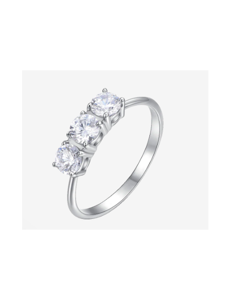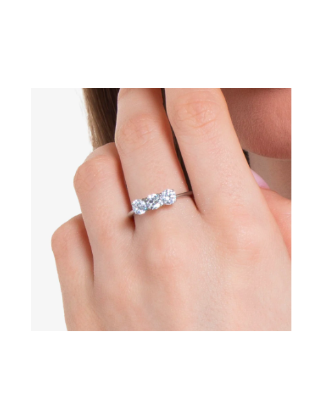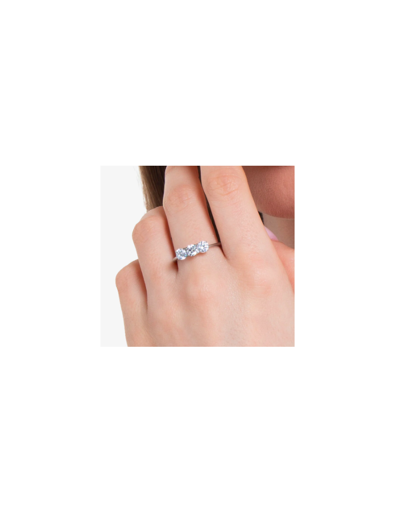 Anello donna in acciaio con cristalli bianchi. Misure: 4.25mm Misura 20 Eleganza e stile si incontrano in questo anello con tre cristalli bianchi incastonati. L'acciaio esalta la luminosità delle pietre, per un accessorio che arricchisce ogni outfit con un tocco chic.