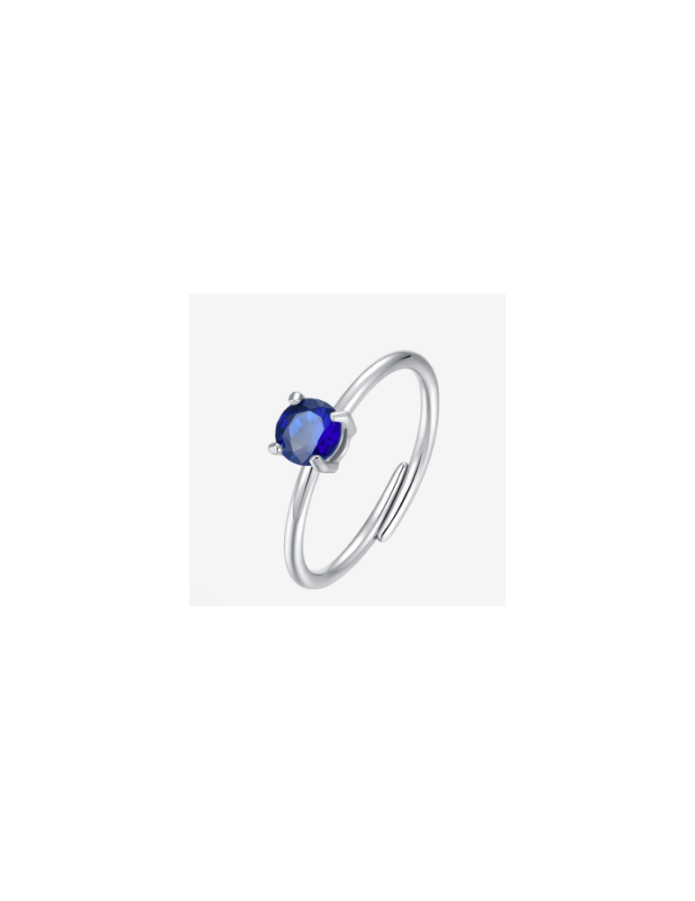 Anello donna in acciaio con zircone blu. Misura zircone: 5mm. Misura regolabile. Scegli questo anello dal fascino senza tempo, arricchito da uno zircone blu. La sua luminosità aggiunge un tocco di classe, rendendolo un accessorio immancabile nel tuo portagioie.