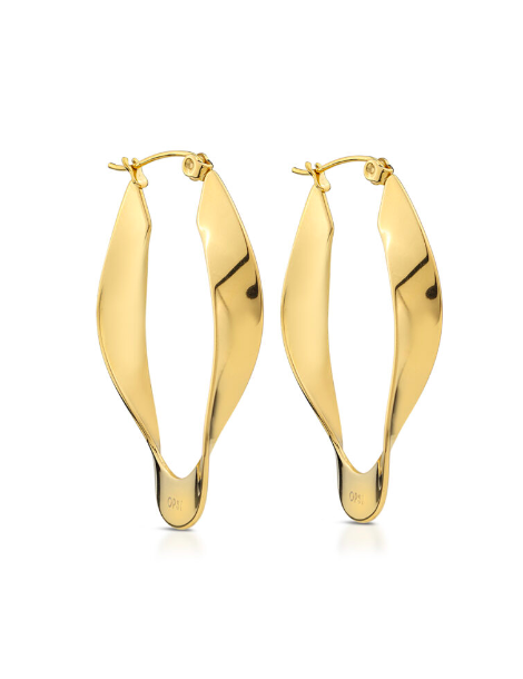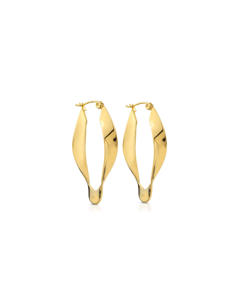 Orecchini ovali in acciaio lucido trattamento PVD oro giallo. Lunghezza 4,2 cm. Personalizzati OPS!