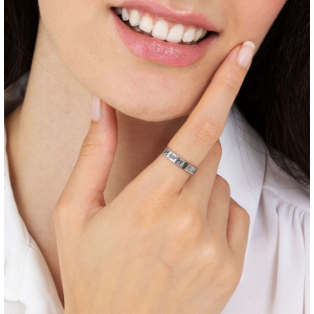 | Luca Barra Anello da Donna in acciaio con smalto nero. Diametro regolabile. |
