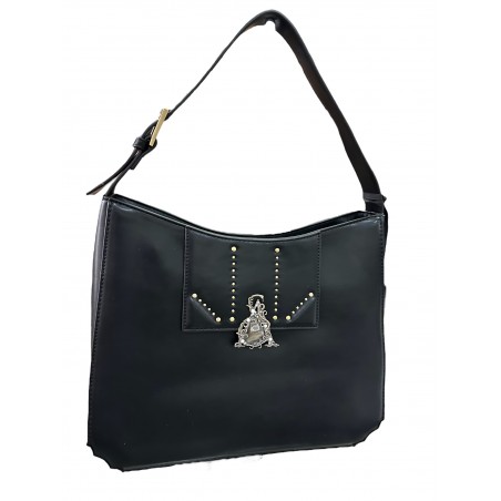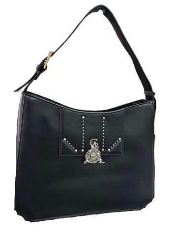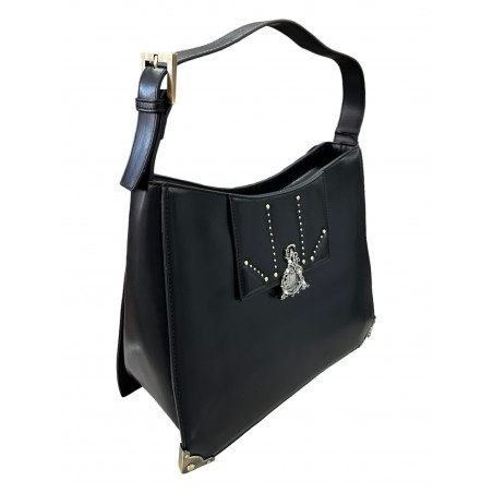 BORSA A SPALLA IN ECOPELLE MORBIDA IMPREZIOSITA SUL DAVANTI DAL LOGO ATELIER DU SAC IN METALLO. CHIUSURA CON ZIP DI COLORE ORO E SALVANGOLI IN METALLO INVECCHIATO.MANICO REGOLABILE. MISURE 30X24X10CM