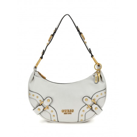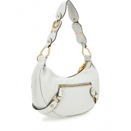 Borsa a spalla in pelle morbida color stone con inserti dorati