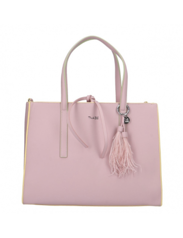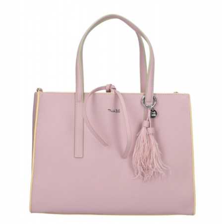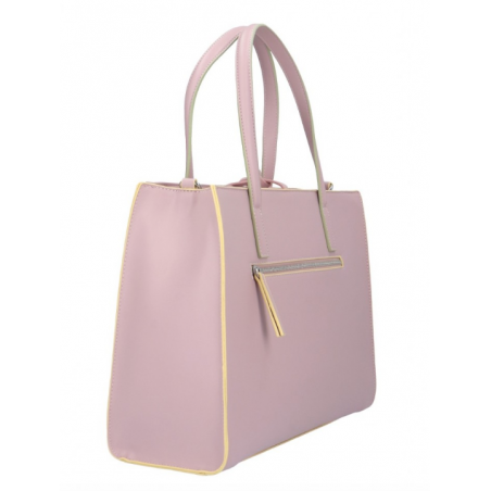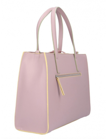 Modello: borsa a mano; Materiale: ecopelle; Colore: bianco; Interno: tessuto; Dettagli: 3 taschini (1 con zip), tasca sul retro con zip, pashmina, portachiavi e tracolla; Chiusura: zip; Dimensioni: 36,5x27x13 cm.