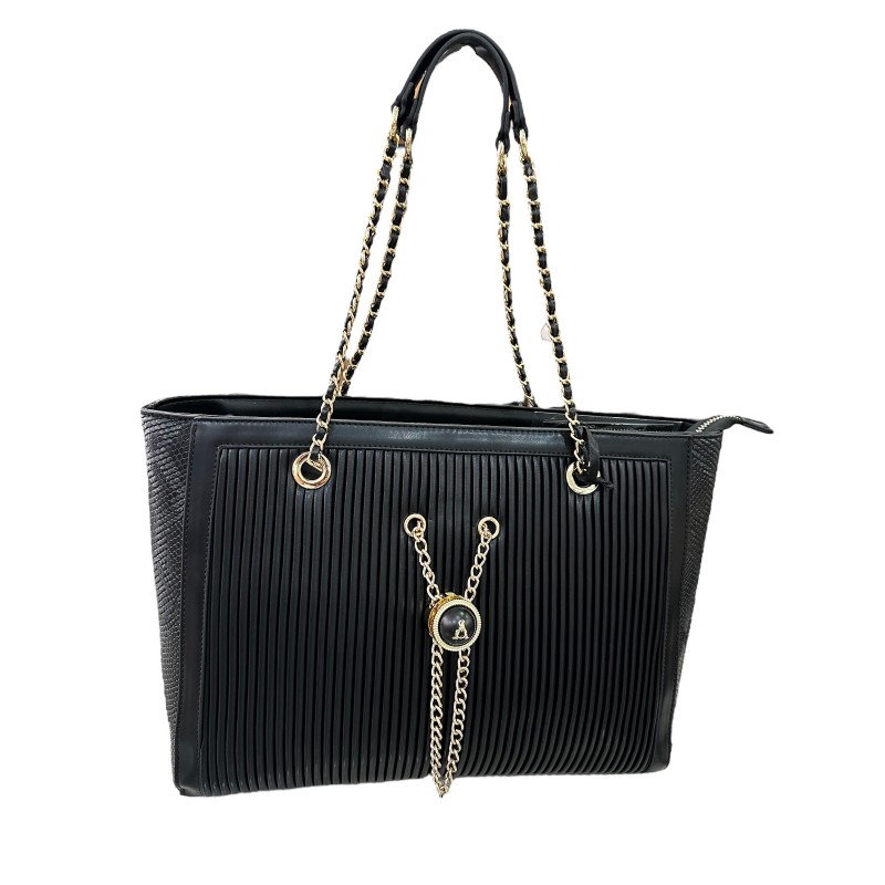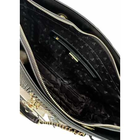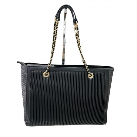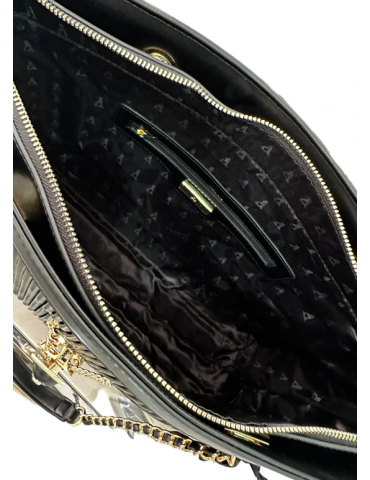 BORSA A MANO IN ECOPELLE MORBIDA CON INSERTI IN COLORE ORO. RIFNITURA LATERALE IN COCCO TONO SU TONO. CHIUSURA CON ZIP IN COLORE ORO.