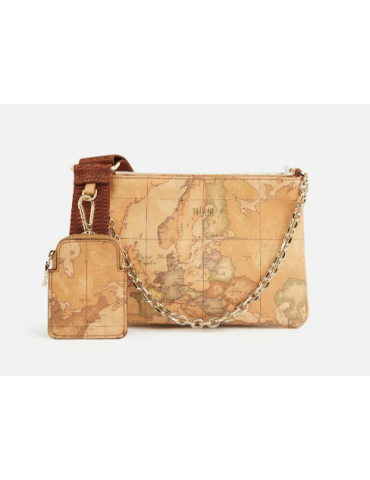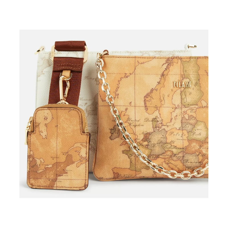 Dall'attitude originale, questa borsa è composta da due pochette, in stampa Geo Classic e Geo White, collegate tra loro da due bottoni a pressione. La tracolla, regolabile e rimovibile, è realizzata in nastro ed è arricchita dal porta monete che la rende ancora più funzionale. Da utilizzare unite per dare un twist creativo ai propri outfit, oppure singolarmente per un look pi