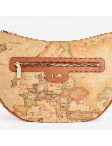 L'attitude urban e funzionale della tracolla a mezzaluna guadagna un'eleganza iconica grazie al tessuto Geo Classic, abbinato ai dettagli in pelle liscia e alla tracolla regolabile in nastro logato. I volumi capienti, suddivisi in più tasche, e la tasca frontale chiusa con zip consentono di tenere ben organizzati tutti gli oggetti essenziali nel quotidiano. Il logo 1ᴬ Classe in oro chiaro completa il design con una nota luminosa.