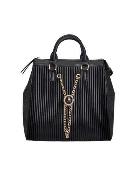 Una borsa/zaino alla moda, elegante e chic caratterizzata da inserti in ecoleather plissé e dettagli dorati. Interno foderato in tessuto e 3 taschini.