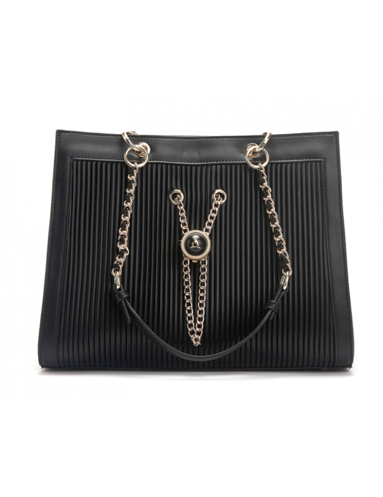 Una borsa alla moda, elegante e chic caratterizzata da inserti in ecoleather plissé.