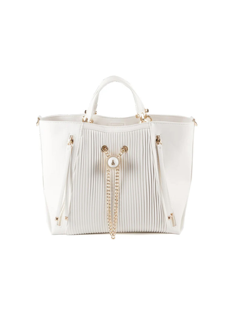 Una borsa alla moda, elegante e chic caratterizzata da inserti in ecoleather plissé.
