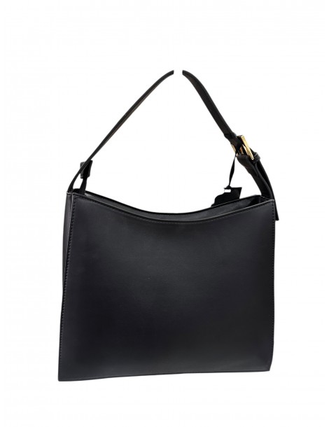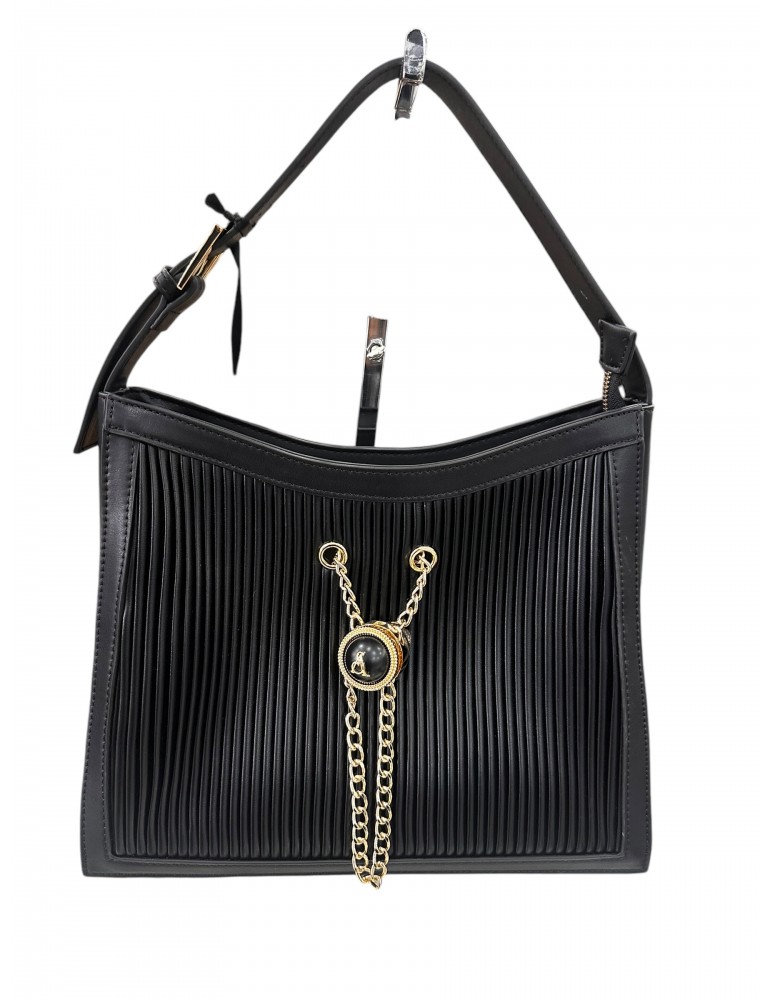 Borsa a spalla con inserti in ecoleather plissé. Il pannello centrale è personalizzato con catena e logo L'Atelier du Sac. Chiusura zip