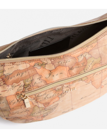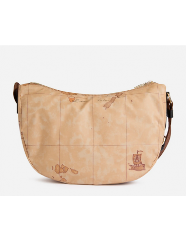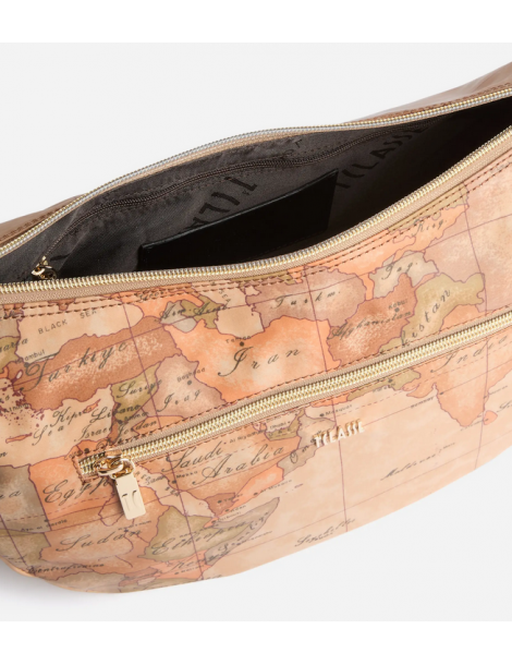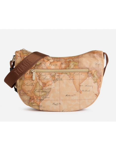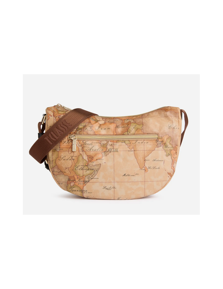 La Linea Highland Soft rinnova il look della tracolla a mezzaluna media in tessuto Soft tramite l'inserto laterale in pelle liscia, sagomato in una forma ad arco che riprende le architetture gotiche della Scozia. Il modello è capiente e versatile, completo di tasche interne e una tasca esterna, mentre la stampa Geo Classic e il logo 1ᴬ Classe imprimono l'animo del brand. Il materiale flessibile e impermeabile la rende perfetta anche per le giornate di pioggia, portando in tutti i look autunnali l'atmosfera avventurosa delle Highlands.
