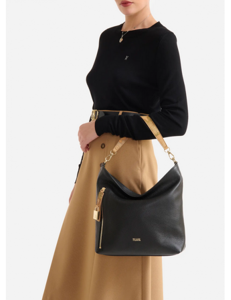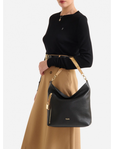 La nuova Mystery Bag è perfetta per custodire tutti i tuoi must-have quotidiani. Il volume è morbido e capiente grazie alla costruzione a T in pelle granata, che dona luce e texture alle raffinate tonalità di stagione. Il suo segno distintivo è la tasca frontale chiusa con zip, il cui tiralampo con stampa Geo Classic si completa di un grazioso lucchetto con logo 1C: il tiralampo si può agganciare sul retro della borsa tramite un gemello, rendendo più sicura la chiusura. Completata dal logo 1ᴬ Classe in oro chiaro, vanta una doppia portabilità: il risultato è un insieme armonioso e originale di eleganza e funzionalità.