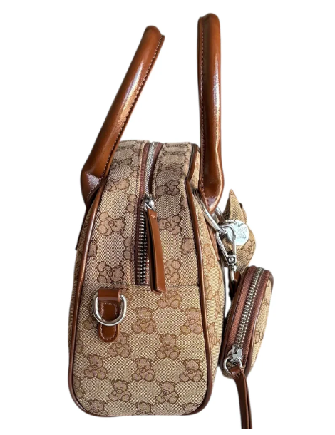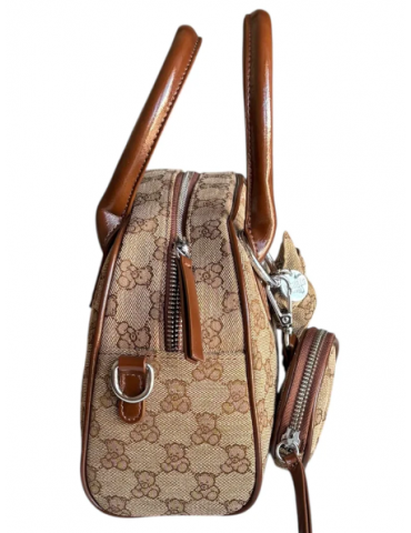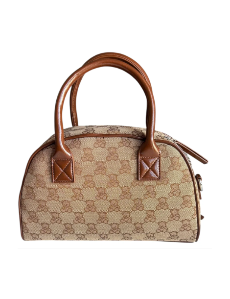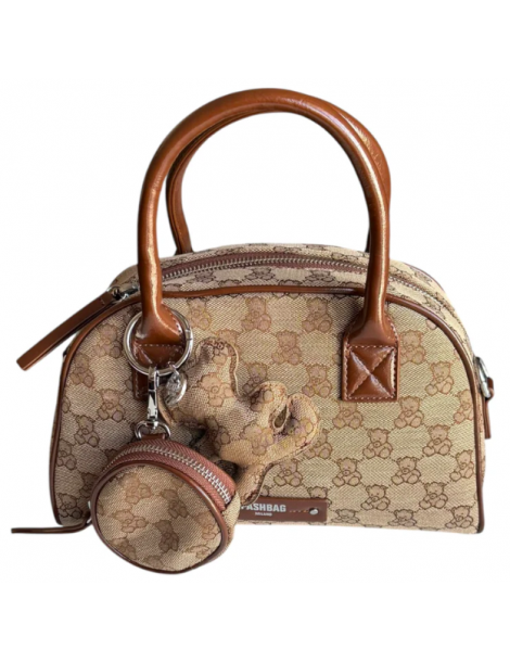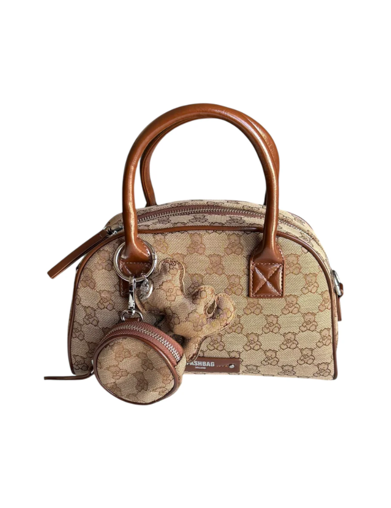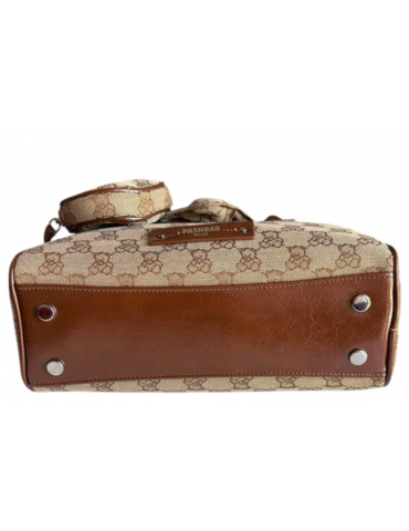 Borsa PashBag a mano e a spalla in tessuto canvas logato taupe/marrone con chiusura zip. Misura 27x16X8 cm, con tracolla e portamonete con gancio, elegante e versatile.