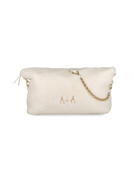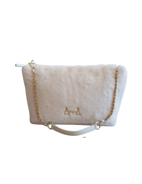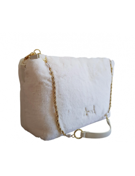 Borsa a tracolla in ecopelliccia con logo L'Atelier du Sac con chiusura zip.Dimensioni 33 cm x 18 cm x 13 cm