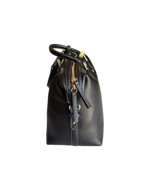 Borsa a mano e a spalla Atelier du Sac in ecopelle nera con chiusura zip. Elegante e funzionale, misura 30x21 cm ed è completa di tracolla regolabile.