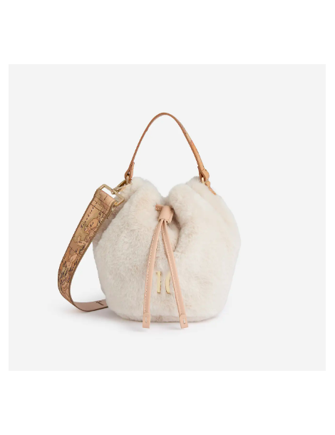 Soffice come un abbraccio, il mini secchiello Cozy Fur è realizzato in eco pelliccia e illuminato dal maxi logo 1C. L'iconica mappa Geo Classic rifinisce il manico e la tracolla regolabile e rimovibile in nastro, bilanciando il look con le sue tonalità calde: un modello sfizioso e di tendenza da abbinare agli accessori di Collezione per look invernali firmati 1ᴬ Classe.