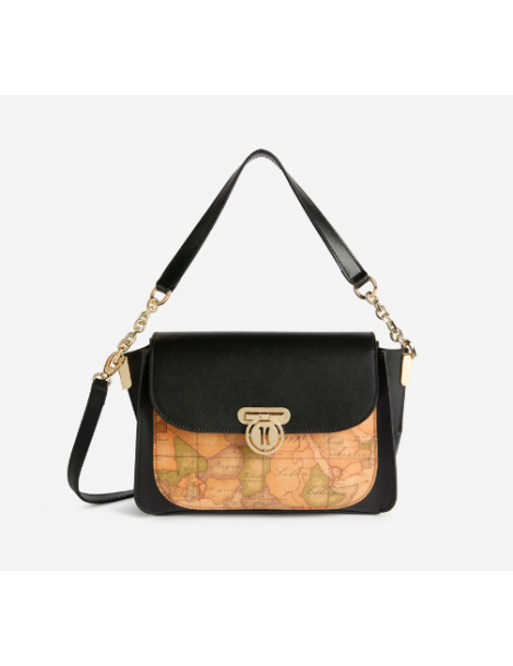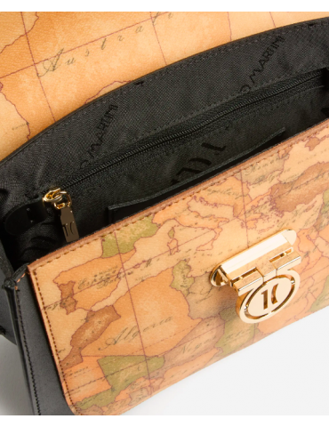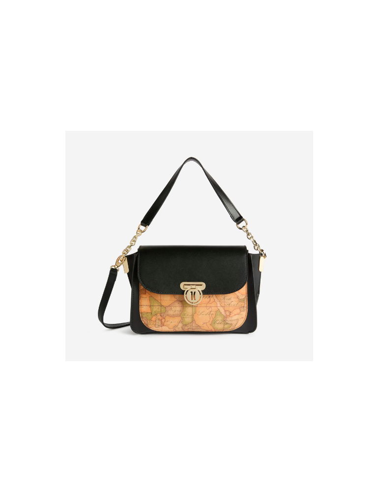 Compatta e strutturata, la borsa a mano con patta Geo Secret Lock è realizzata in pelle liscia abbinata al maxi inserto frontale in tessuto Geo Classic. A dare il nome alla Linea è la chiusura a incastro con medaglietta logata 1C, che si solleva e scivola attraverso la fessura per aprire la patta. Il manico in pelle con inserto in catena permette di portare la borsa a mano o a spalla, mentre la tracolla regolabile e rimovibile consente anche la portabilità crossbody. Abbinala a stivali o tronchetti per look da giorno chic, o alle décolleté per combinazioni eleganti da sera.