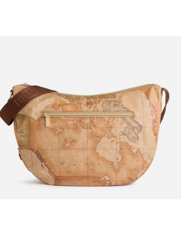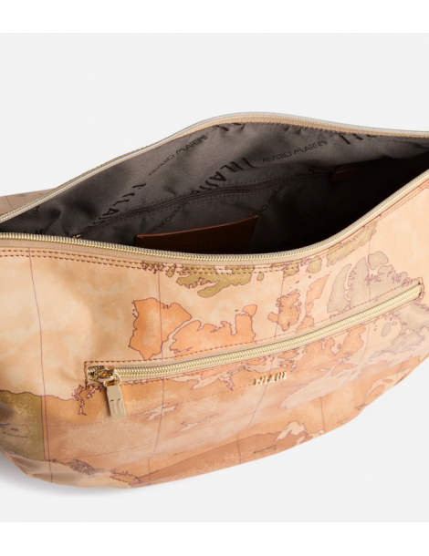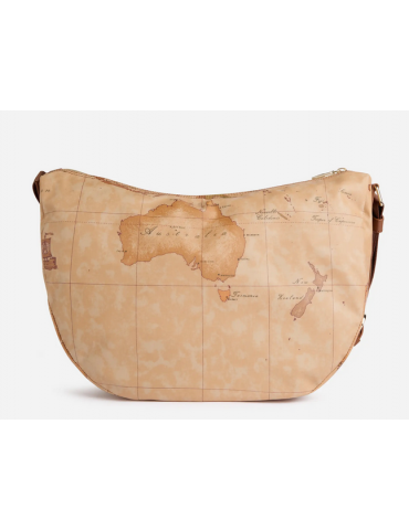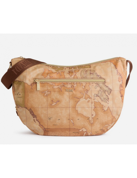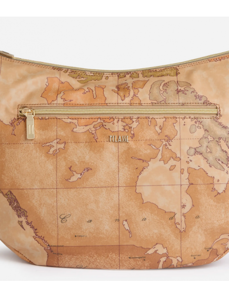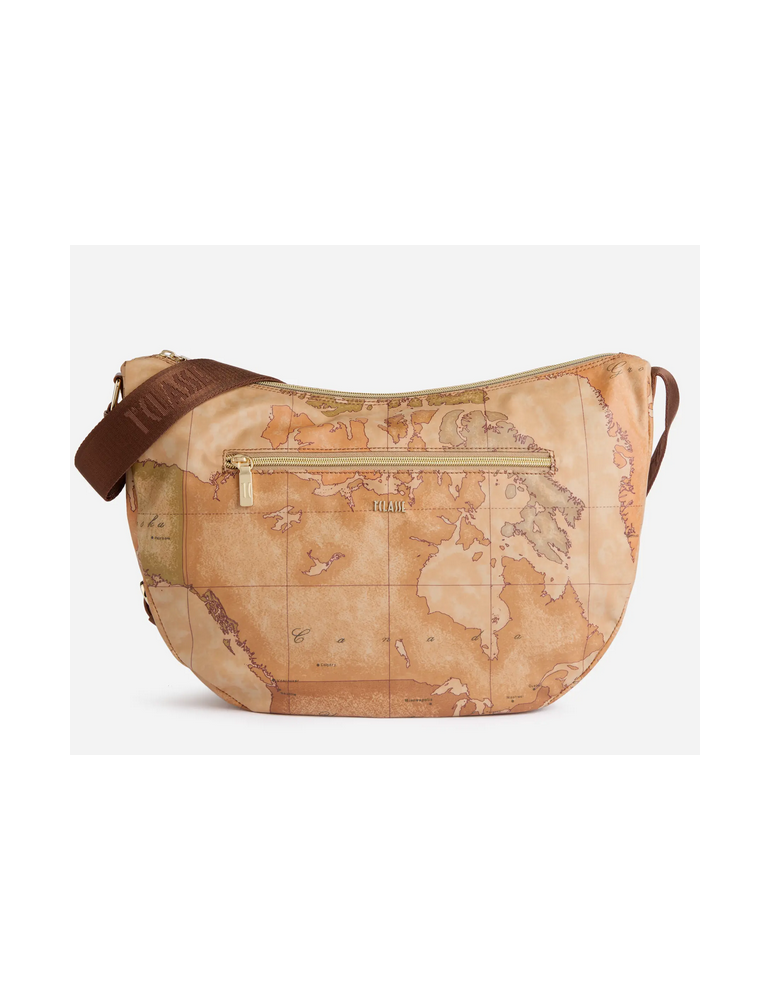 Un modello intramontabile, la tracolla a mezzaluna grande in tessuto Soft vanta un'ottima capienza, una tasca frontale e uno spirito active grazie al materiale flessibile e impermeabile. La stampa Geo Classic e il logo 1ᴬ Classe, presente sul fronte e sulla tracolla regolabile in nastro, la rendono inconfondibile, mentre l'inserto laterale in pelle liscia interpreta la destinazione della Collezione imitando le volte dell'architettura gotica scozzese. Il suo nome omaggia la scenografica regione delle Highlands, confermando la sua attitude funzionale e adatta al clima imprevedibile della mezza stagione.
