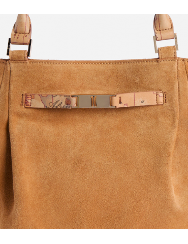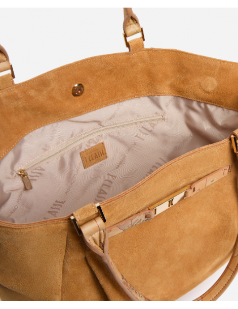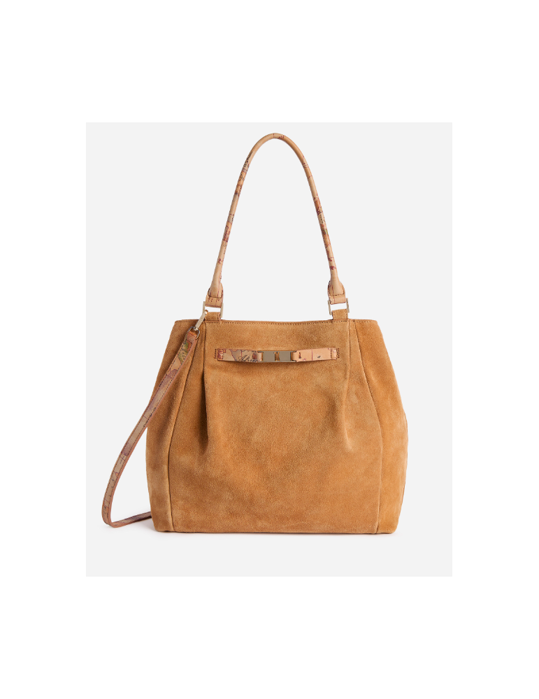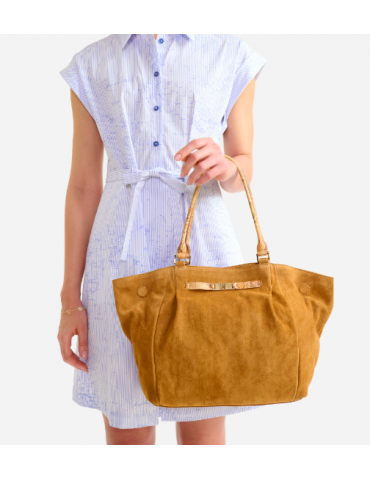 Borsa shopping grande in pelle scamosciata