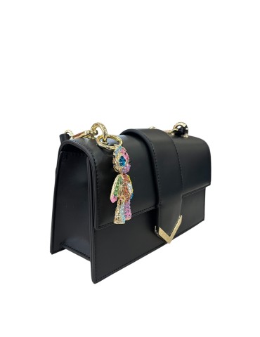 Borsa a mano con tracolla rimovibile in ecopelle con dettaglio charm/portachiavi gioiello