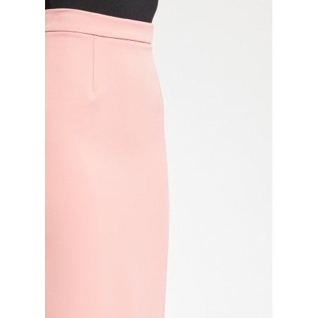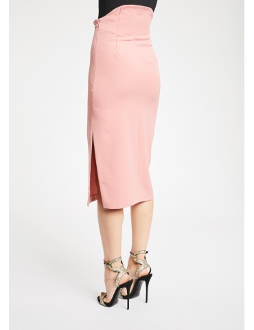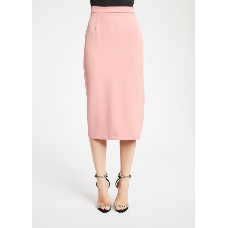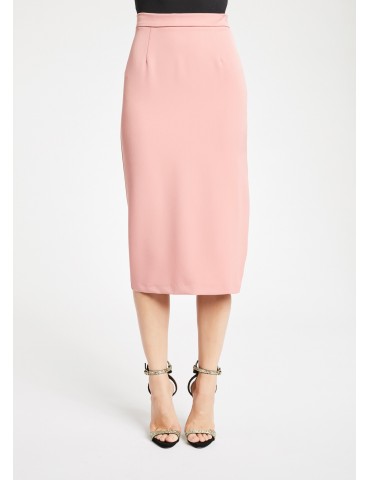 Gonna midi dalla linea a tubino realizzata in tessuto tecnico. Il modello si caratterizza per la costruzione sagomata sul retro, lo spacco laterale e la chiusura con zip sul fianco.