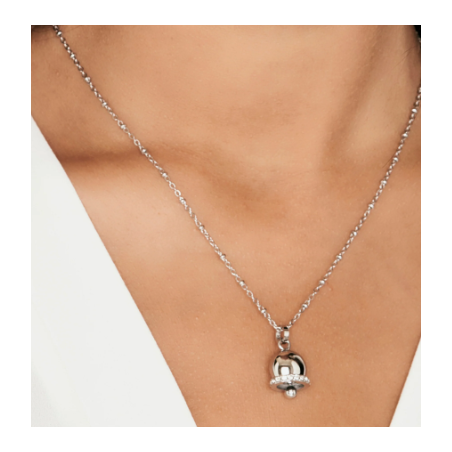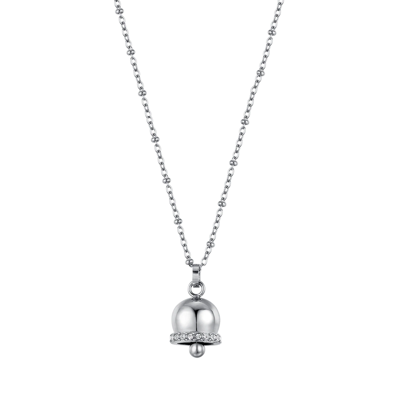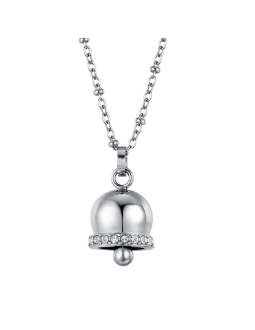 COLLANA DONNA IN ACCIAIO IP GOLD CON CAMPANELLA CON CRISTALLI BIANCHI