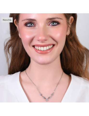 COLLANA IN ACCIAO CON QUADRIFOGLI E ZIRCONI BIANCHI