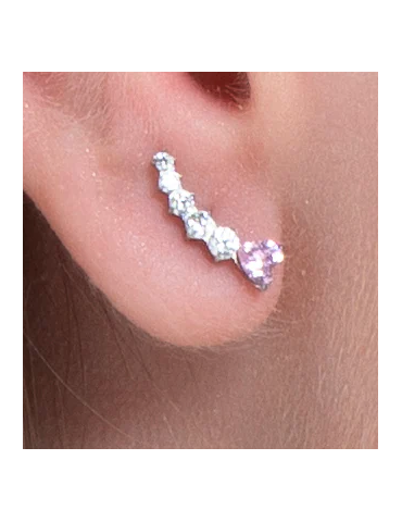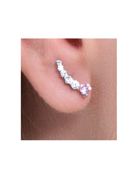 ORECCHINI DONNA IN ACCIAIO CUORE ROSA E CRISTALLI BIANCHI
