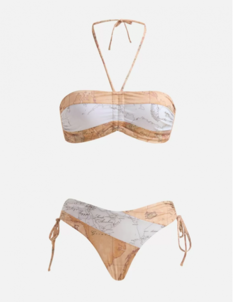 Il bikini a fascia Geo Mix propone la mappa del brand nelle sue due varianti iconiche, Geo Classic e Geo White, per un look naturale e armonioso che risulta lusinghiero su tutti gli incarnati. La fascia è regolabile nel centro grazie all'elastico, così come la sgambatura degli slip: un alleato dell'abbronzatura dallo stile esclusivo, da abbinare alla fascia per capelli della stessa linea.