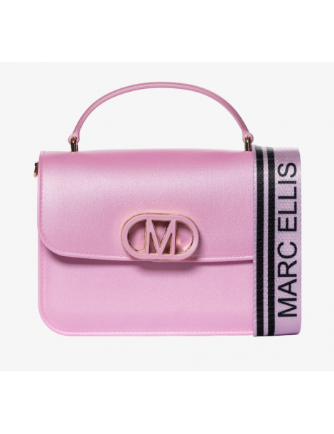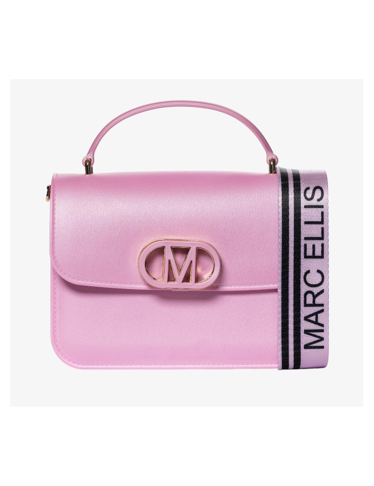 MARC ELLIS Borsa a mano Flat Ear rosa da donna. La borsa è realizzata in gomma con un design elegante e minimalista. Ha una struttura rigida con una patta frontale e una chiusura magnetica decorata con il logo tono su tono. Il manico superiore è fisso e dispone di una doppia tracolla: una a catena per un look più raffinato e una in tessuto logato per un tocco casual e sportivo. L'interno è ben organizzato con scomparti per tenere tutto in ordine. Perfetta per aggiungere un tocco moderno e raffinato ai tuoi outfit quotidiani. Dimensioni 14,5cm altezza, 19cm larghezza, 7cm profondità. Stagione primavera estate.