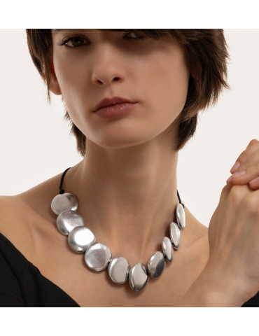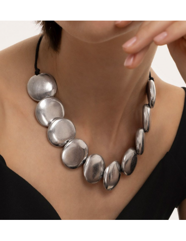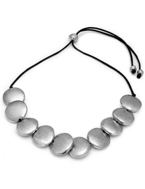 Collana filo regolabile con tondi piatti realizzati in alluminio 100% riciclato. Lunghezza collana 40 cm. Nickel tested. Lavorazione artigianale. Gioielli fatti a mano, unici e artigianali, perfetti per tutti i tuoi look o come idea regalo.