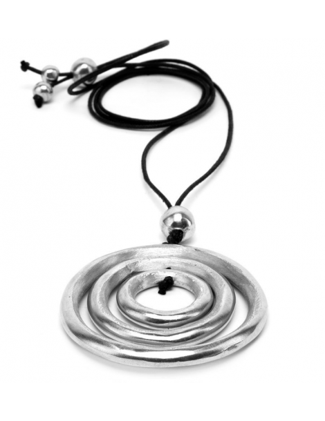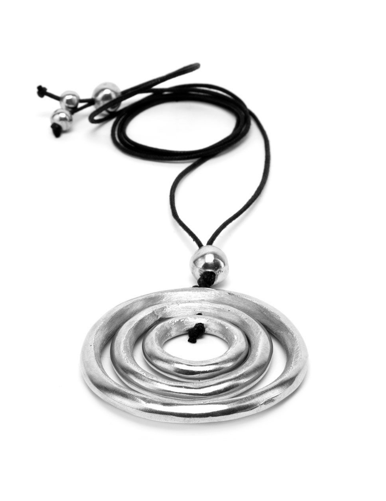 Collana filo con pendente cerchi. Chiusura regolabile. Realizzata a mano in alluminio 100% riciclato.