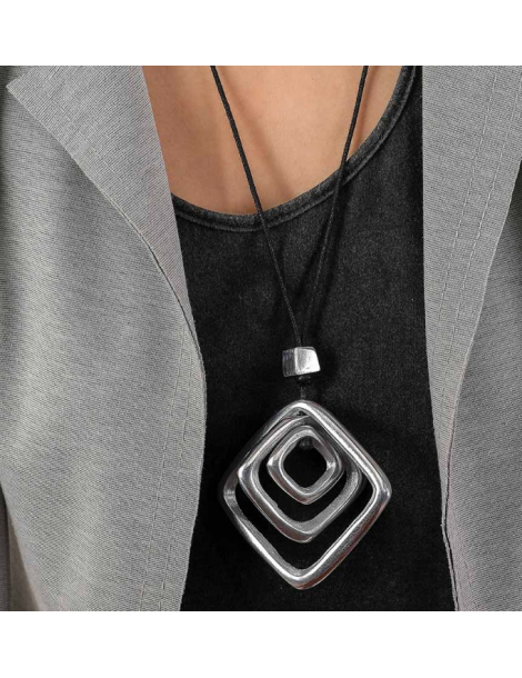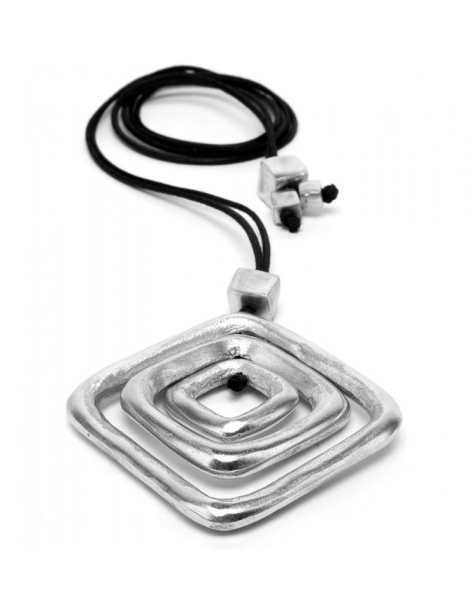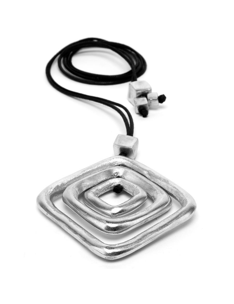 Collana filo con pendente elementi romboidali. Chiusura regolabile. Realizzata a mano in alluminio 100% riciclato.