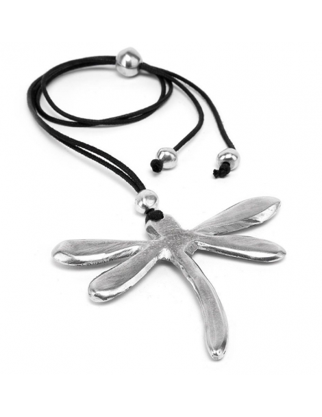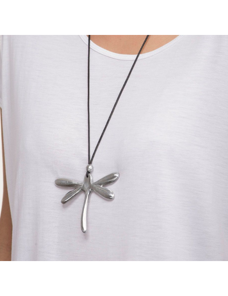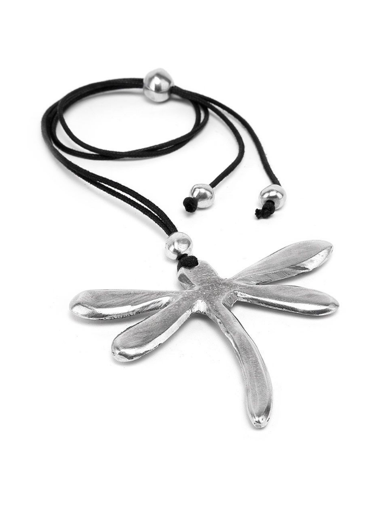 Collana filo con pendente libellula. Chiusura regolabile. Realizzata a mano in alluminio 100% riciclato.