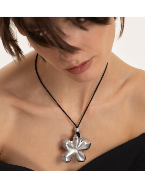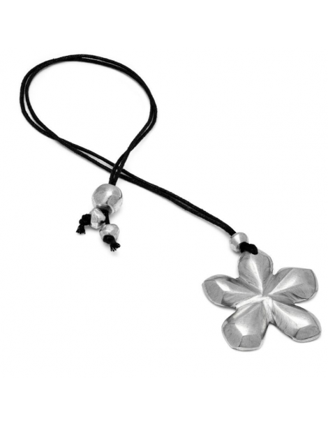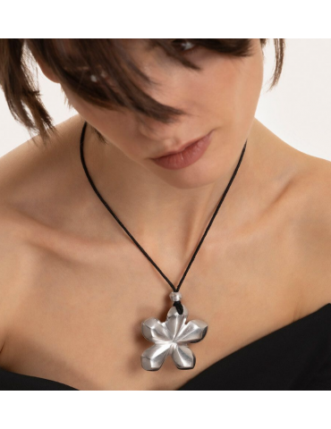 Pendente filo regolabile forma fiore realizzato in alluminio 100% riciclato. Lunghezza filo 35 cm. Nickel tested. Lavorazione artigianale. Gioielli fatti a mano, unici e artigianali, perfetti per tutti i tuoi look o come idea regalo.