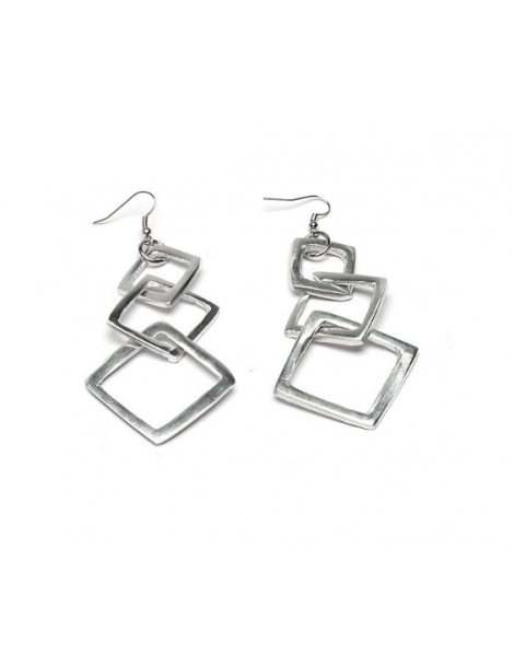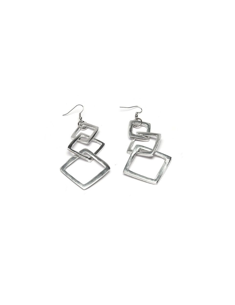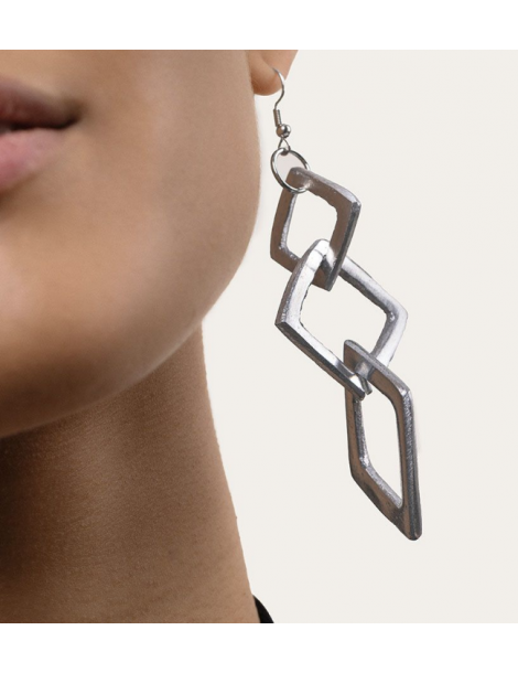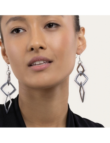 Orecchini con pendente rombi intrecciati. Realizzati a mano in alluminio 100% riciclato.