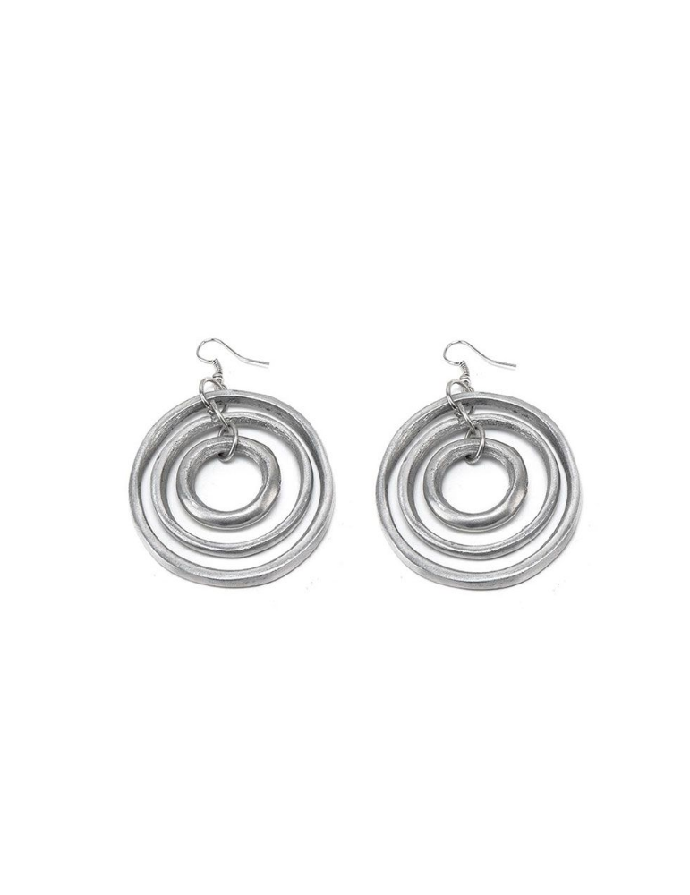 Orecchini con pendente cerchi. Realizzati a mano in alluminio 100% riciclato.