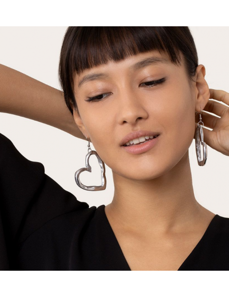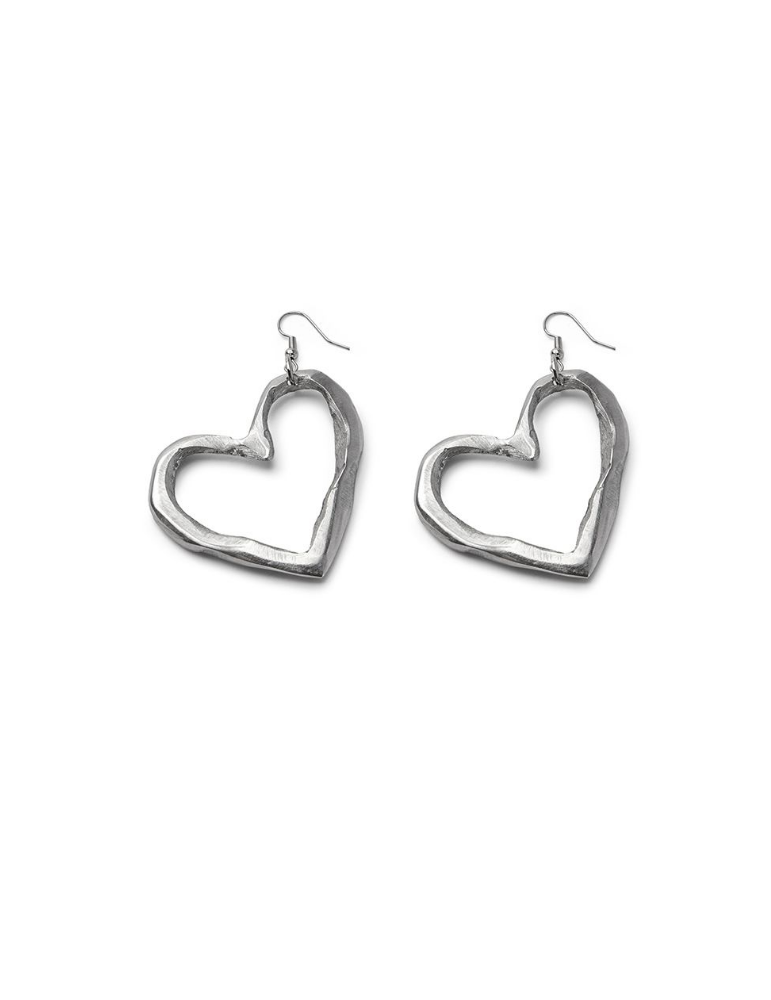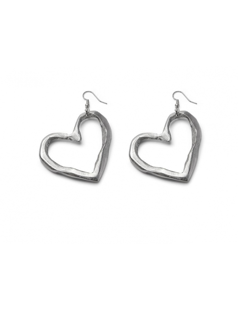 Orecchini cuore irregolare. Diametro 5 cm circa. Chiusura ad amo. Realizzato a mano in alluminio 100% riciclato. Nickel tested. Lavorazione artigianale. Le misure indicate possono essere soggette a piccole variazioni date dall'artigianalità¤el prodotto.