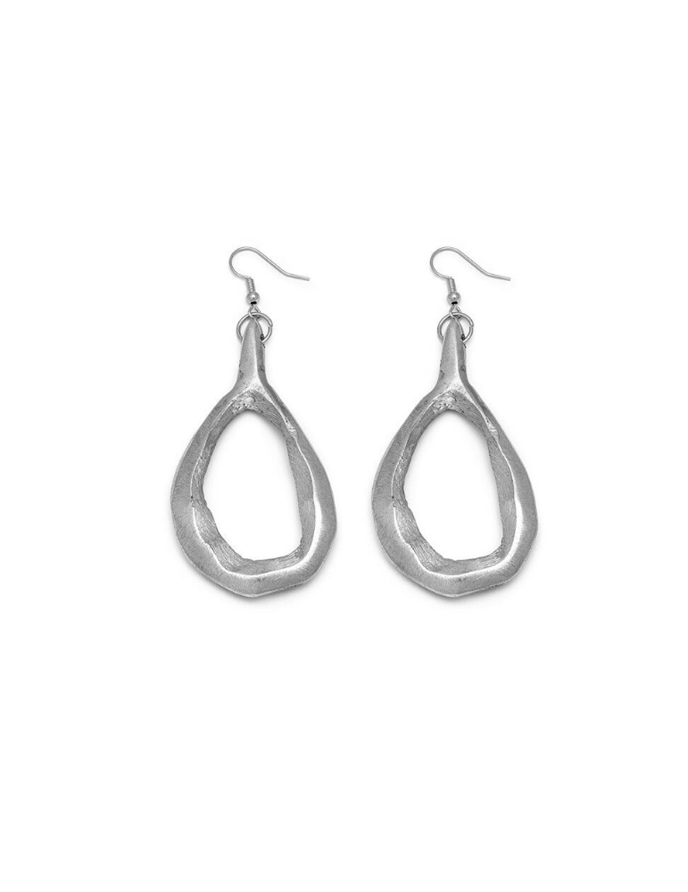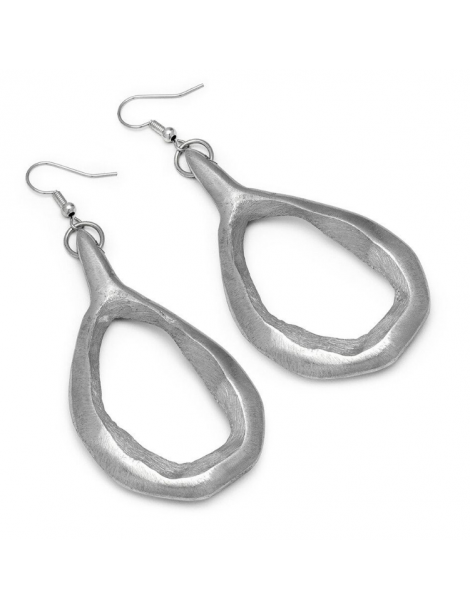 Orecchini pendenti a forma di ovale texture irregolare realizzati in alluminio 100% riciclato. Chiusura ad amo. Dimensione 7cm ca. Nickel tested. Lavorazione artigianale. Gioielli fatti a mano, unici e artigianali, perfetti per tutti i tuoi look o come idea regalo.