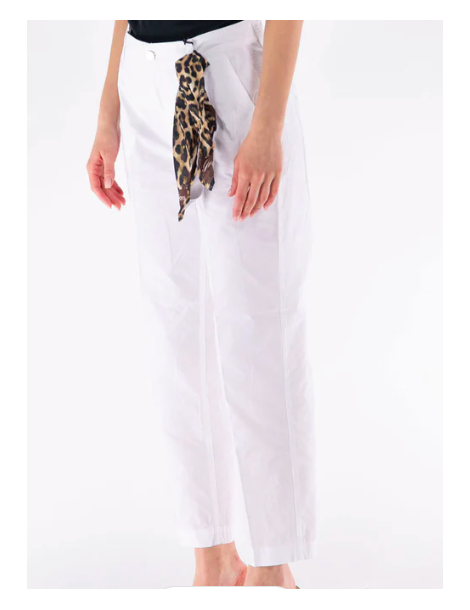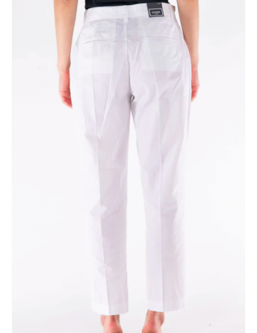 - Modello con vita alta e chiusura a bottone e cerniera.