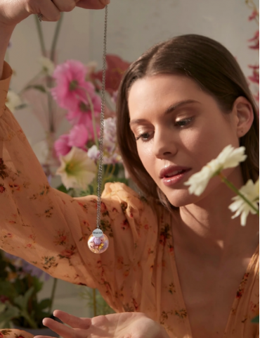 Ogni fiore che compone questa collana è autentico, vero, intrappolato per sempre in un’ ampolla delicata e resistente. I petali mantengono i loro colori vibranti e le loro forme eleganti, come se fossero appena stati colti nei campi fioriti di Spello in una luminosa giornata di primavera. La collana porta con sé un pezzo di quella meraviglia, un frammento di natura incantata che diventa così un simbolo di felicità.