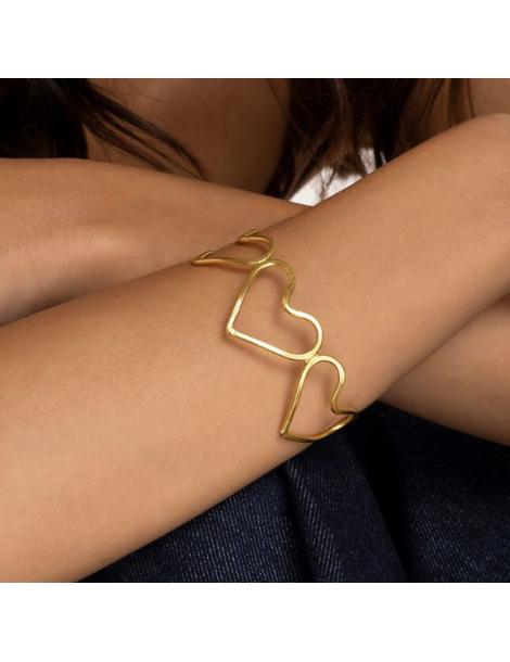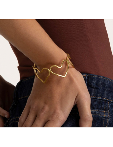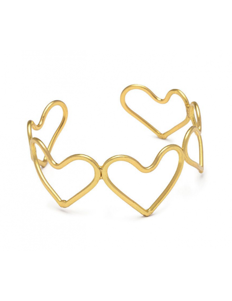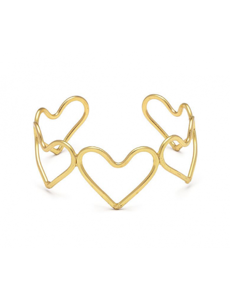 Bracciale fascia silhouette cuori piccoli in ottone riciclato. Modello aperto regolabile. Nickel tested. Lavorazione artigianale. Gioielli fatti a mano, unici e artigianali, perfetti per tutti i tuoi look o come idea regalo.