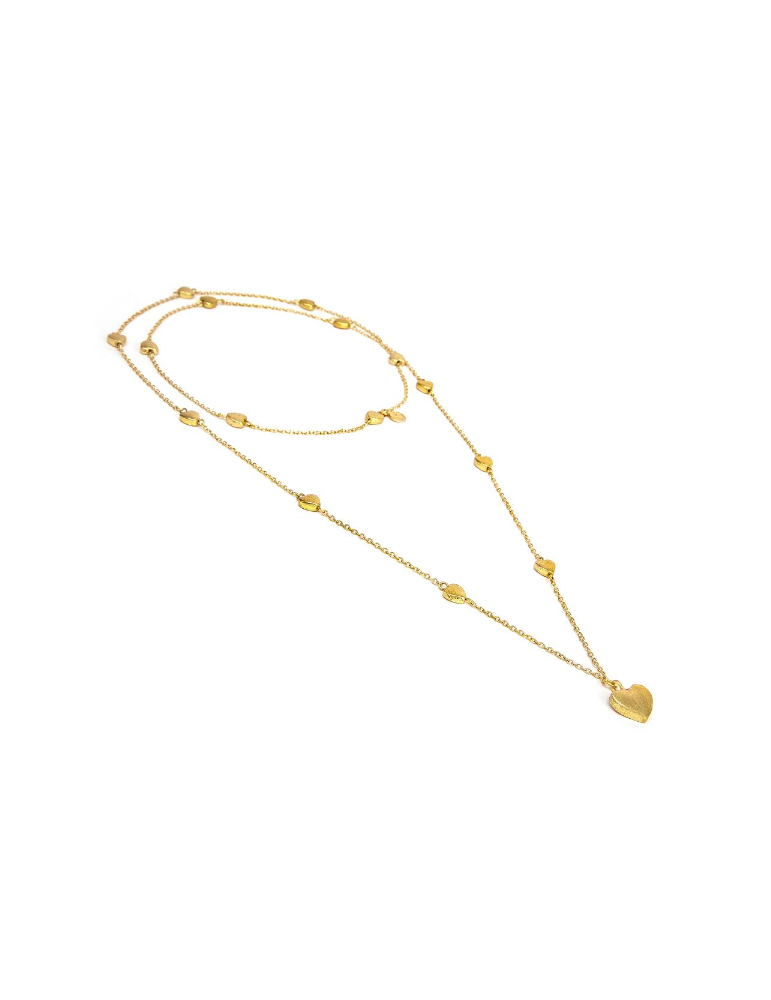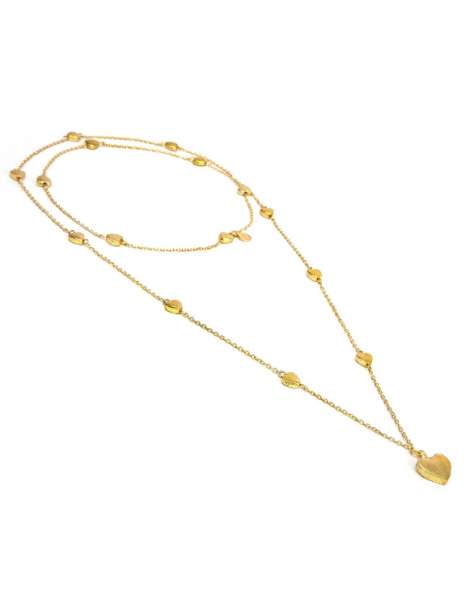 Collana catena lunga con inserti a forma di cuore. Lavorazione artigianale.