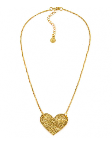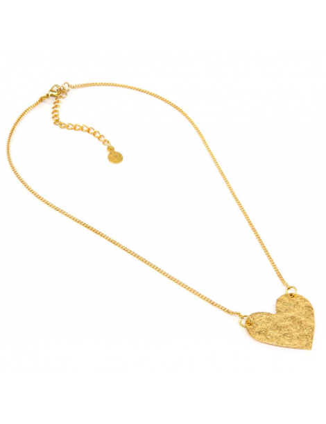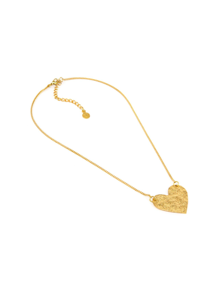 Collana in ottone con pendente cuore piatto grezzo. Chiusura con moschettone. Nickel tested.Ottone riciclato, Lavorazione artigianale.