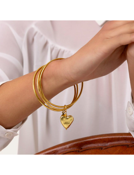 Bracciale in ottone modello bangle. 3 bangle intrecciati con ciondolo cuore. Diametro 6,5 cm. Nickel tested. Gioielli fatti a mano, unici e artigianali, perfetti per tutti i tuoi look o come idea regalo.