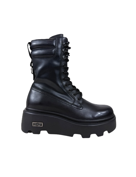 ANFIBIO IN ECOPELLE. SUOLA IN GOMMA ALTA 6CM. CHIUSURA CON LACCI E ZIP LATERALE