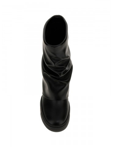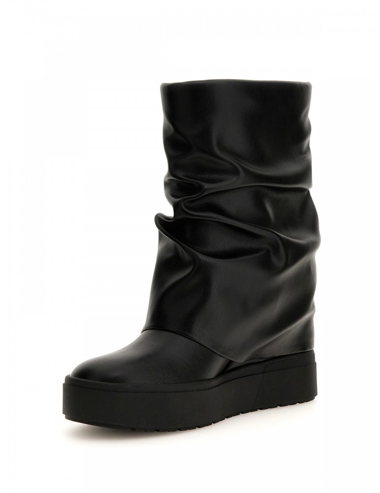 STIVALETTO IN ECOPELLE CON PUNTA TONDA E ZEPPA INTERNA DI 8 CM. GAMBALE ALTO 12 CM E SUOLA IN GOMMA ALTA 8CM