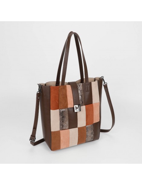 SHOPPER IN ECOPELLE CON INSERTI PATCHWORK DI VARI COLORI SCAMOSCIATI